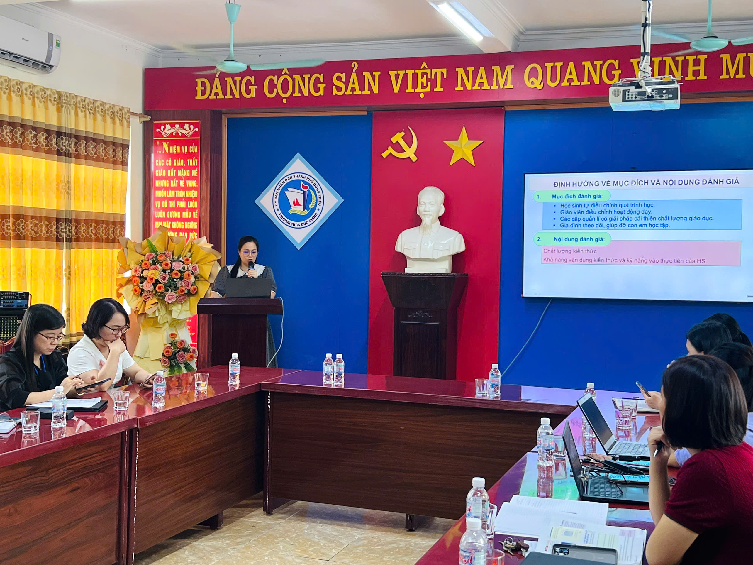 Đồng chí Trần Thị Dung-Phó hiệu trưởng trường THCS Đức Chính chủ trì hội nghị.