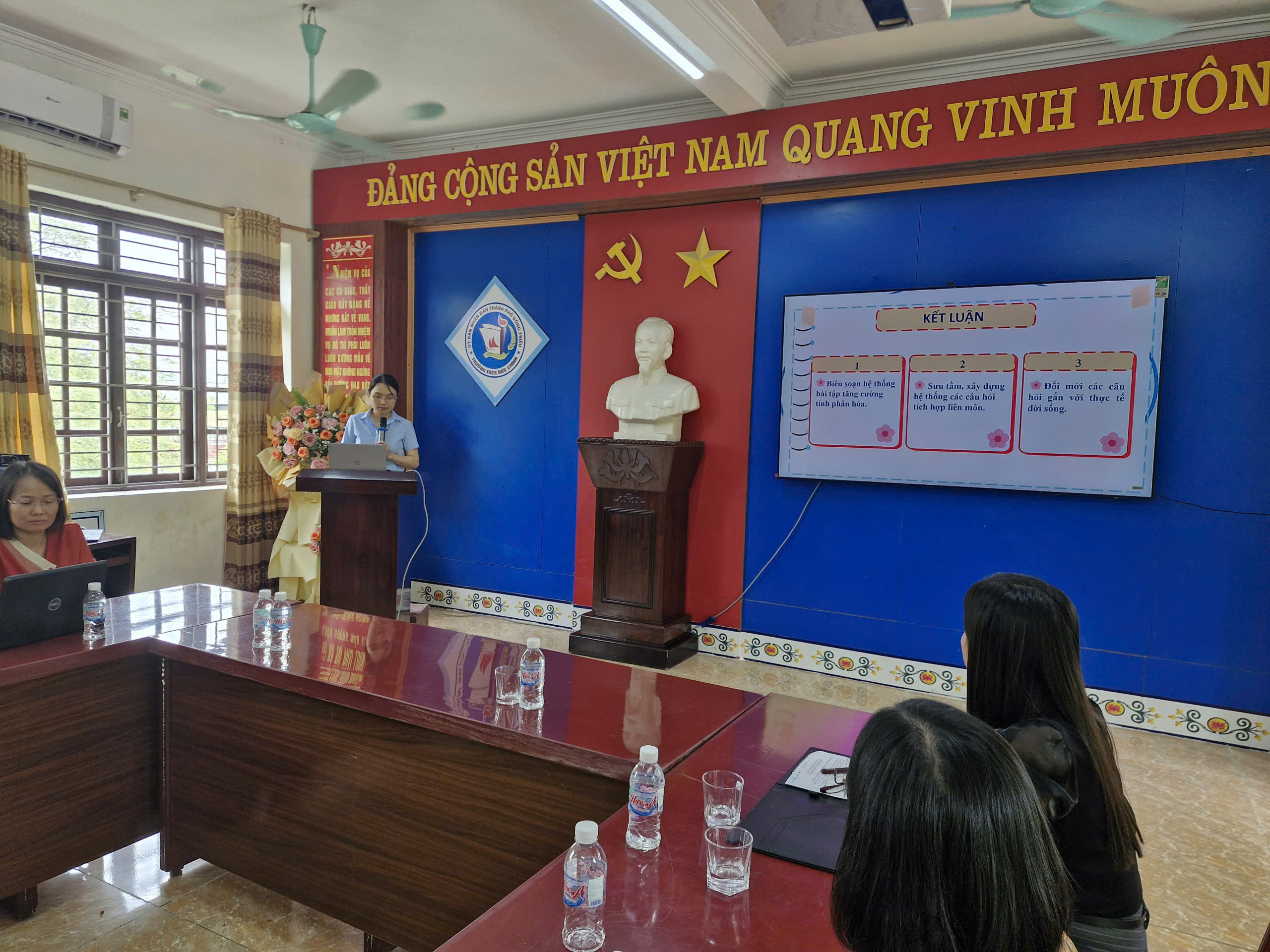 Trường cuối cùng báo cáo là THCS An Sinh với phần trình bày của cô Trần Hà Anh nhấn mạnh nội dung về các kiến thức phần Tiến hoá của KHTN 9 và định hướng ra đề tuyển sinh vào 10. Phần hướng dẫn ra đề học sinh giỏi được triển khai kỹ lưỡng, nhấn mạnh đến tư duy logic, khả năng vận dụng kiến thức tổng hợp và độ phân hóa phù hợp.