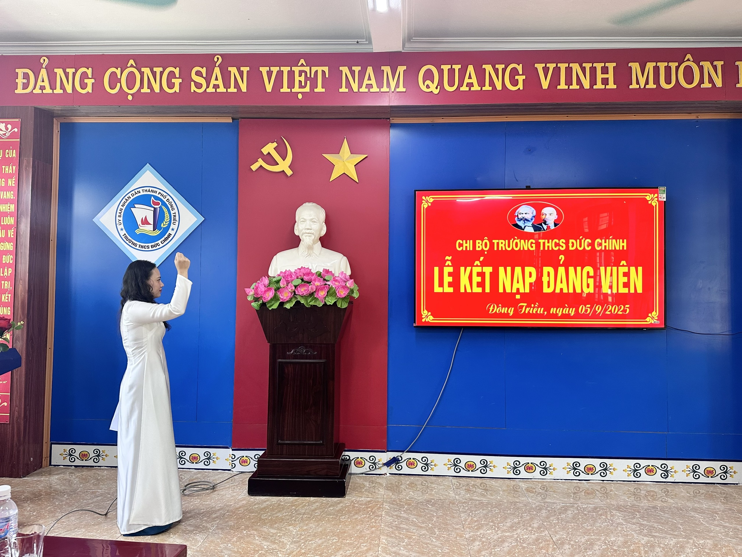Chi bộ Trường THCS Đức Chính kết nạp Đảng viên mới, bổ sung lực lượng trẻ, nhiệt huyết Đông Triều, Quảng Ninh