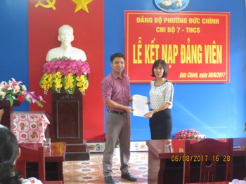 Thực hiện quyết định số 75-QĐ/ TU ngày 01/06/2017 của Thị ủy Đông Triều về việc kết nạp đảng viên mới, chiều ngày 08/06/2017 chi bộ trường THCS Đức Chính tổ chức lễ kết nạp đảng viên cho đồng chí Dương Trọng Hải vào Đảng cộng sản Việt Nam.
